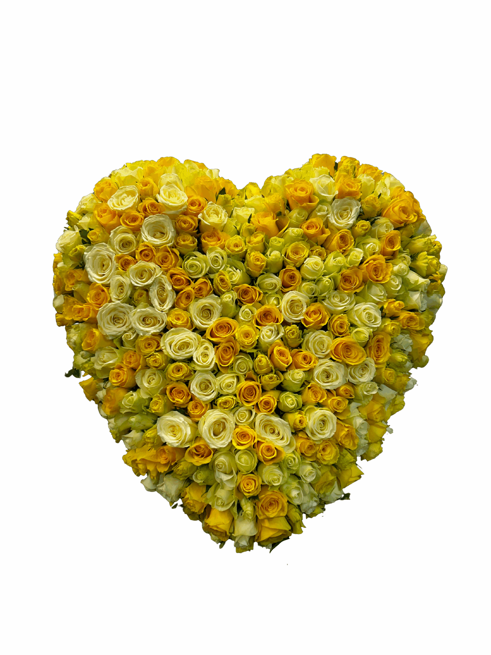 Mooi dicht rouwhart in de kleuren geel – wit