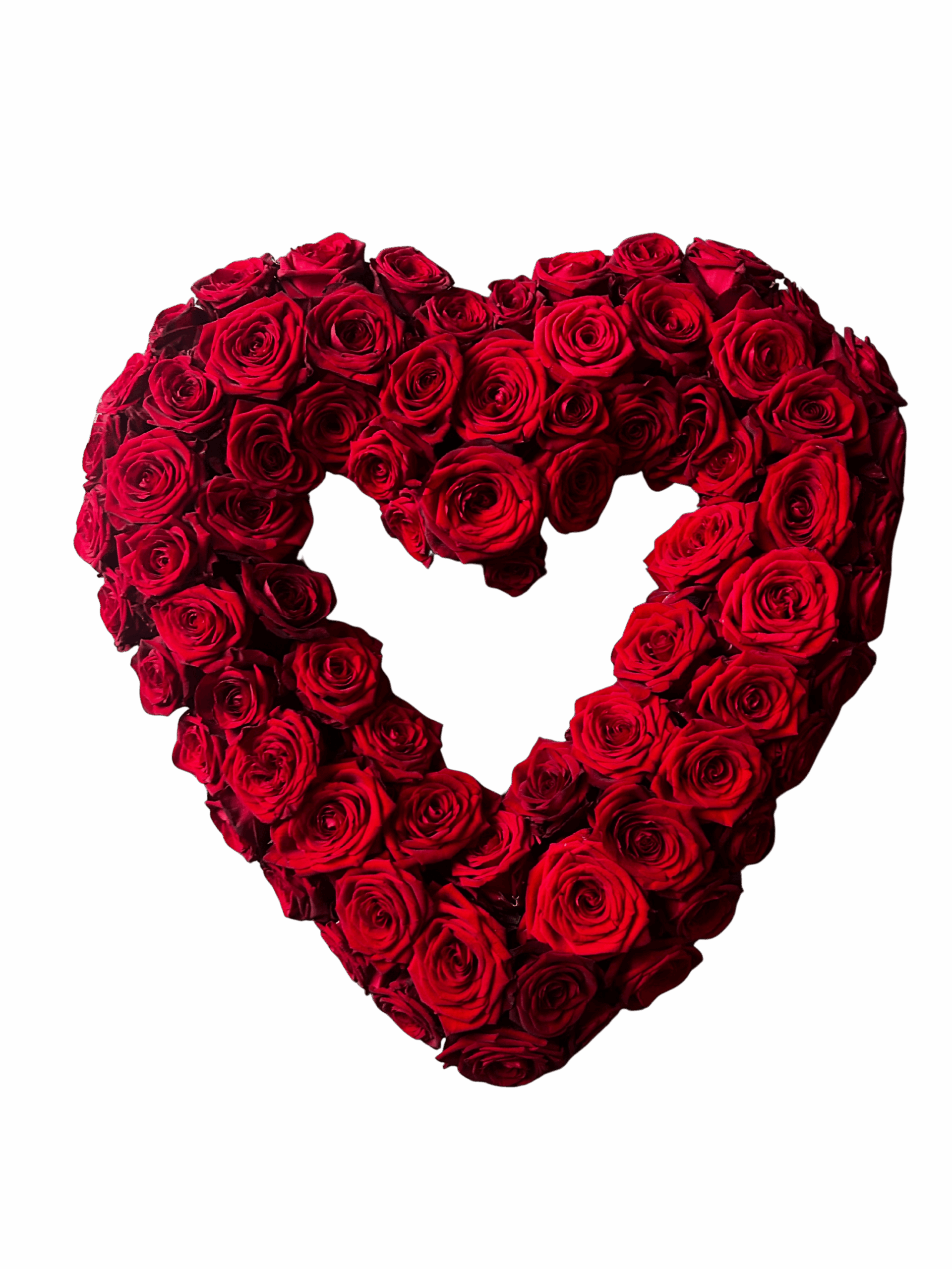 Open hart gemaakt van rode rozen